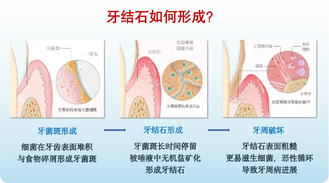 小小的牙结石里藏着大量细菌,在我们不注意的时候,细菌及其代谢产物会刺激毛细血管扩张,炎性细胞浸润,引起牙龈充血水肿,导致牙周病的发生。