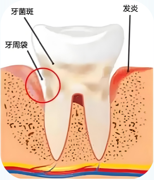 累及深层的牙周组织,表现为咬物疼痛、冷热敏感、甚至牙齿松动等